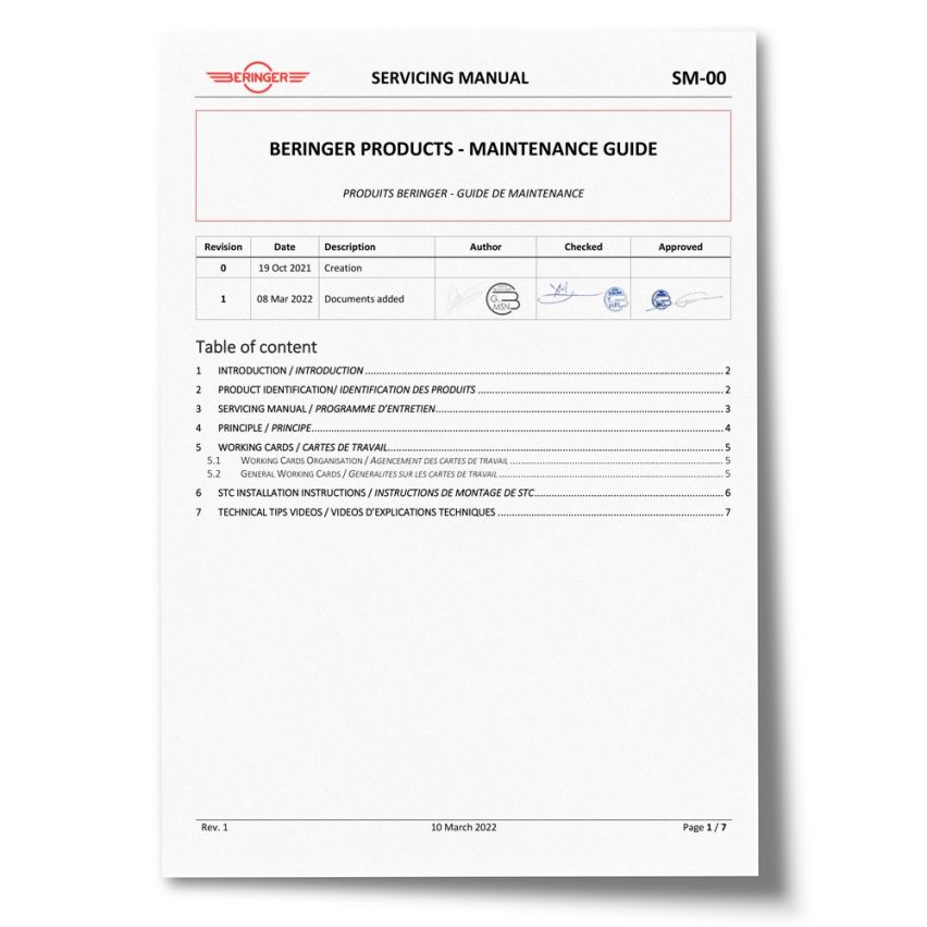 - Maintenance manuals (MM) : are the procedure manuals for carrying out maintenance actions such as dismantling and re-assembly, and also includes IPC BERINGER (detailed product catalogue)
